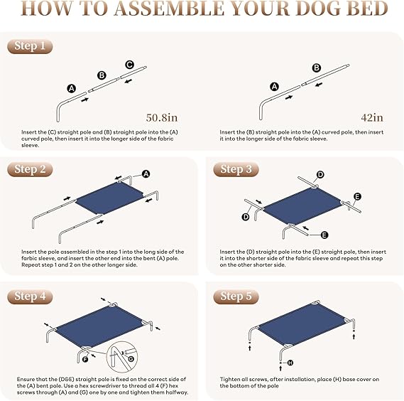 - 【Product Dimensions】This raised dog bed measures 50.8" L x 31.5" W x 8" H (elevated sleeping area: 43.3" x 31"). Supports dogs up to 85 lbs