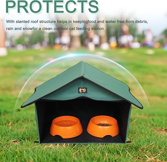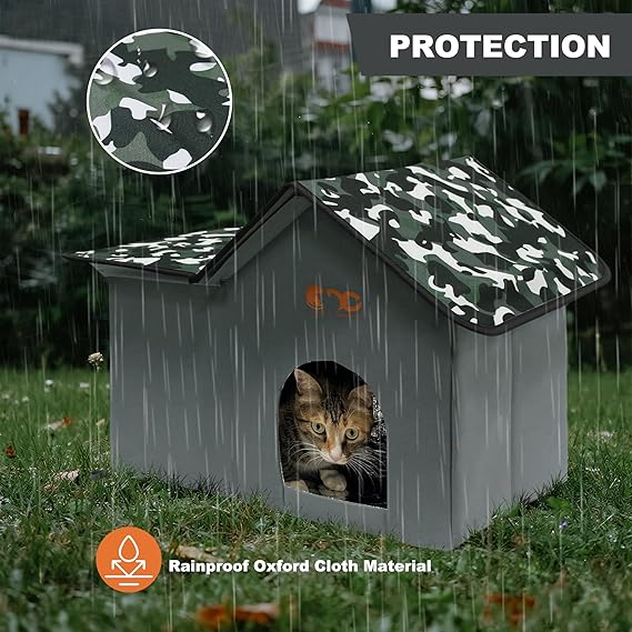 - Waterproof sloped roof: GeerDuo cat house use weather-resistant material, its interior incorporates an aluminum foil thermal layer to keep pets warm during cold weather. waterproof roof helps pet withstand rain and snow so you can use it anywhere! The house is welcome both indoor and outdoors