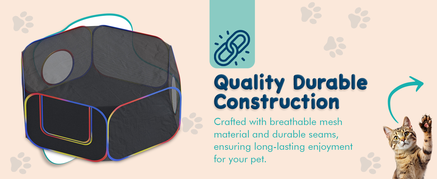 - CONVENIENT SETUP: Experience the ease of setting up your pet's playground in just 1 minute with these Pop up Cat Tent Enclosures. Not only are they a breeze to assemble, but they also ensure hassle-free maintenance. Plus, rest assured that any quality concerns will be promptly addressed for your satisfaction, allowing you to enjoy uninterrupted playtime with your furry friend.