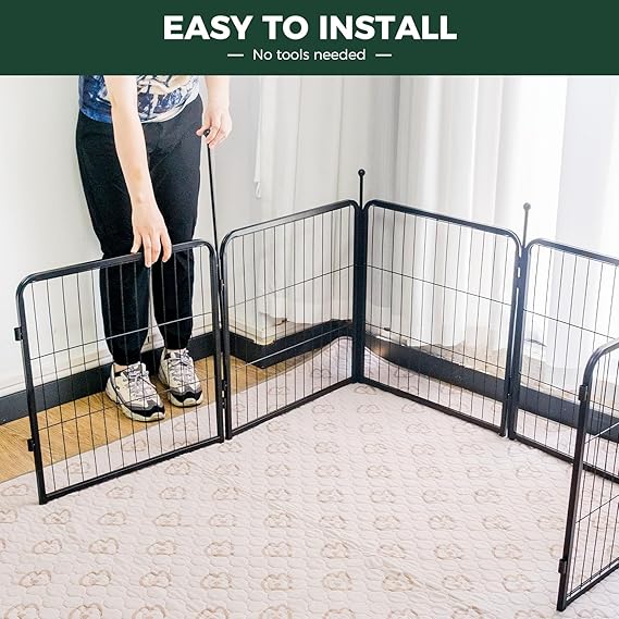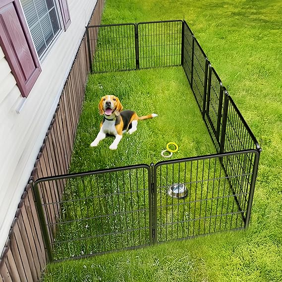 - Super easy to assemble: It won’t take you more than 5 minutes to assemble these portable dog fences as well as pack them away due to the rod-connected design. Meanwhile, panels can be added or removed freely to give you a fully flexible area and arrange the dog pen in any shape you need.