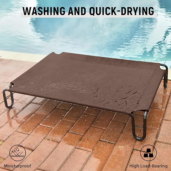 - Portable Raised Dog Cots: For quick and easy assembly, watch the Pettycare elevated bed video for some helpful tips! And for your convenience, this dog cot bed has a removable cover that is machine washable and can even be hosed off outdoors!