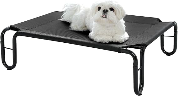 pettycare Elevated Outdoor Dog Bed - Raised Bed for Large Dogs, Waterproof Cot Easy to Assemble, Cooling Elevated Cot with Breathable Teslin Mesh, Durable, Non Slip, Up to 65 lbs,Black