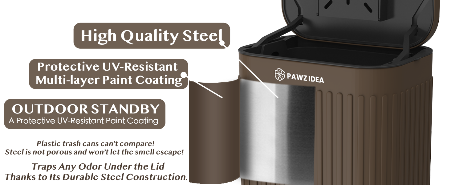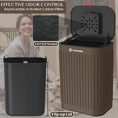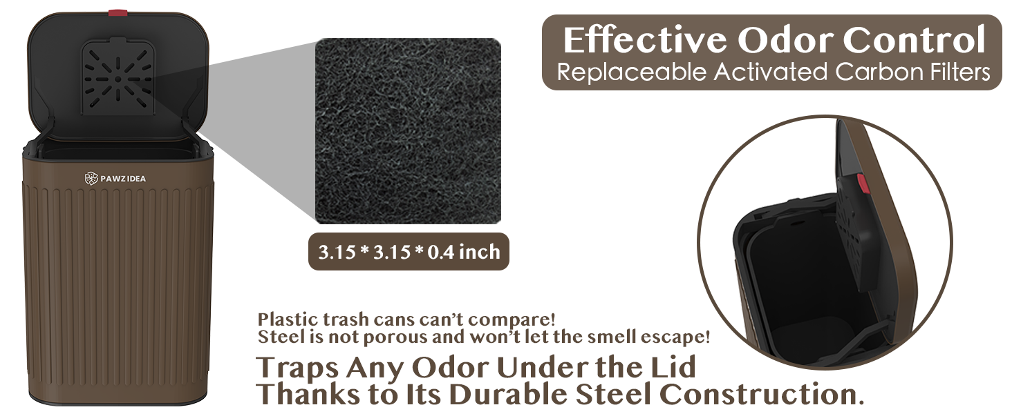 - ODOR CONTROL: Keep your yard fresh and clean with this dog poop trash can outside that has a lid with replaceable activated carbon pieces. They absorb and neutralize odors, preventing them from escaping and attracting flies. (Activated carbon pieces sold separately at PAWZIDEA store in 2 weeks.)