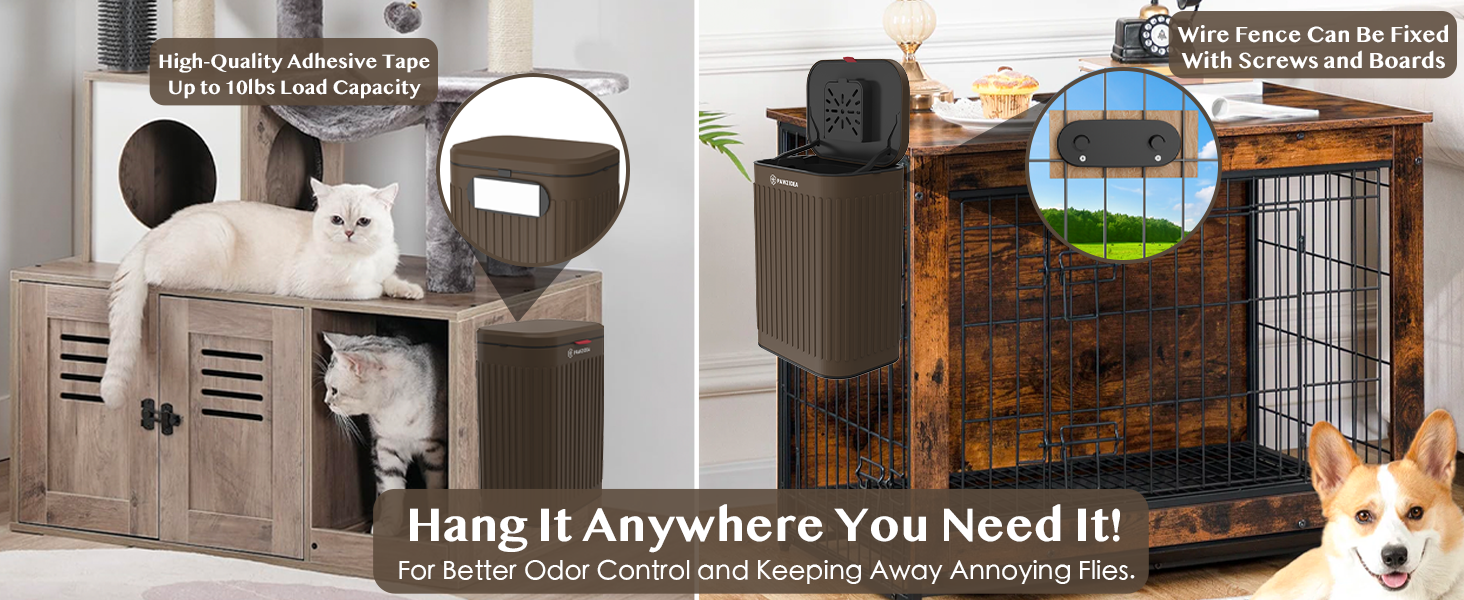 - MULTIPURPOSE AND VERSATILE: This dog poop garbage can also be used as a cat litter waste can, hanging it on the cat litter box enclosure. It can also store other types of garbage, such as diapers, food scraps, or paper towels. It is a great addition to any home with pets.