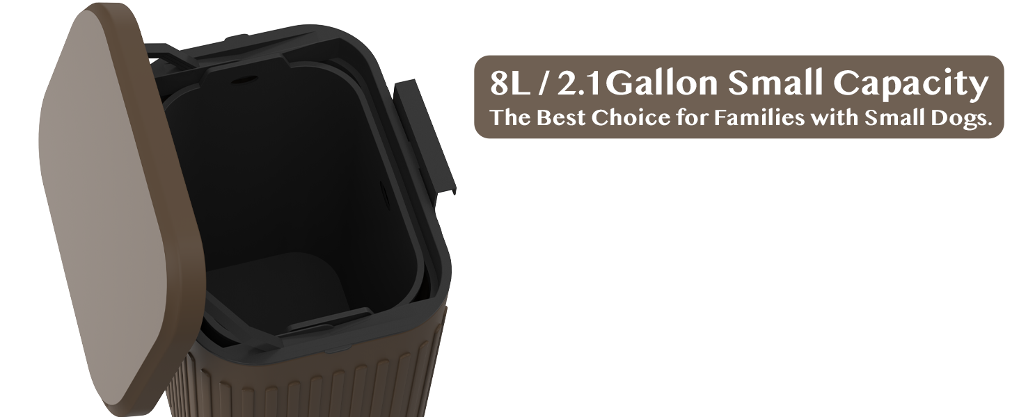 - PERFECT SIZE FOR SMALL PETS: 2.1 gallons capacity, comfortably stores enough small dogs and cats waste until trash day. For large dogs, we recommend buying 2 or more units and combining them. It also has a removable inner bin that is easy to empty and clean. It is BPA-free and eco-friendly.