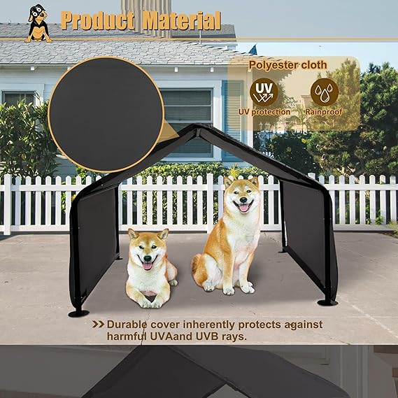 - 【Sturdy and Stable Frame】: The frame of the dog shade shelter is made of high-quality steel and treated with high-quality powder coating, which protects the dog tent from corrosion and rust and extends its service life. this dog shelter is built to last and withstand outdoor conditions, making it a reliable choice for outdoor use.