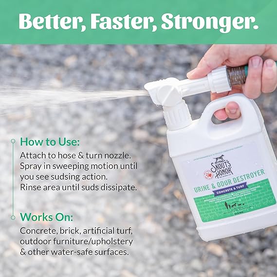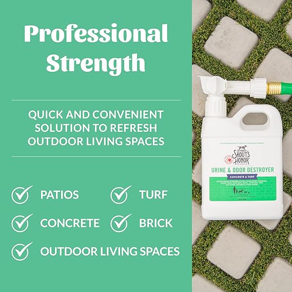 - Permanently Removes Stains - Skout's Honor pet outdoor urine cleaner effectively breaks down urine stains, ensuring they are permanently removed from concrete & turf.