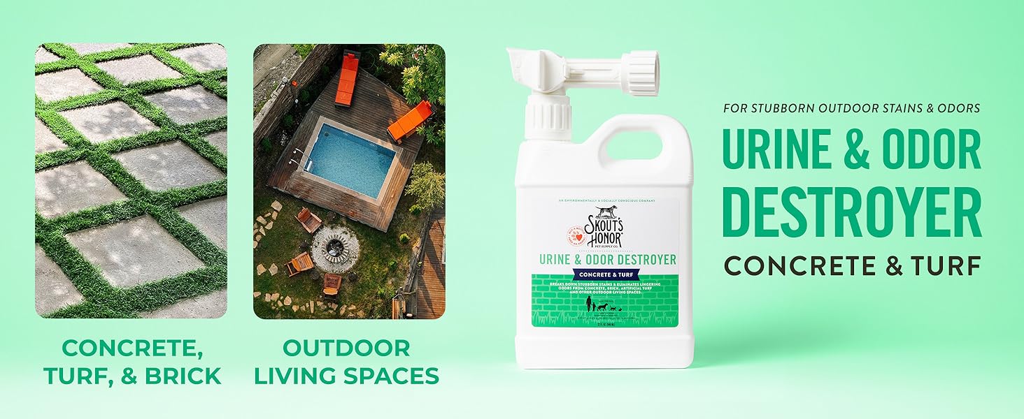 SKOUT'S HONOR Pet Urine & Odor Destroyer Concrete & Turf - Professional Strength, Plant-Powered, Cruelty-Free Urine Eliminator for Concrete, Turf, and Outdoor Living Spaces 32 oz.
