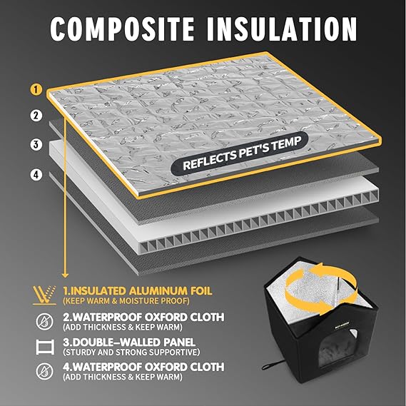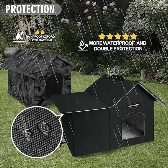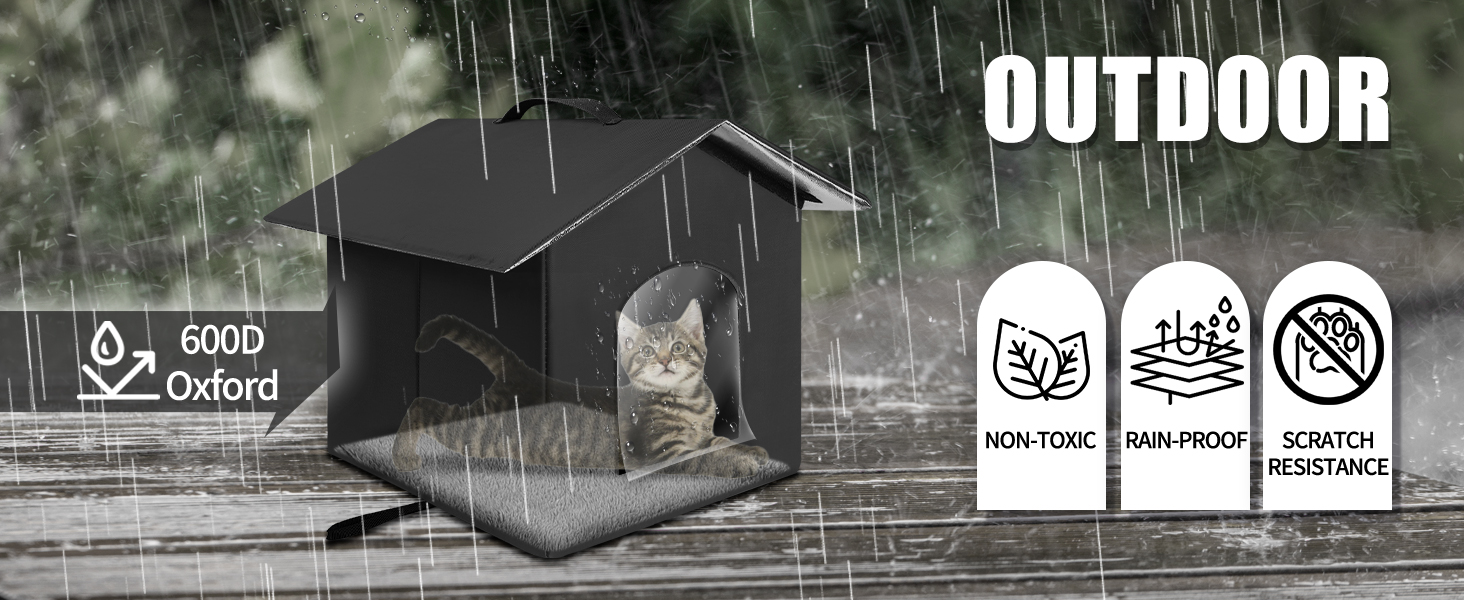 - WATERPROOF MATERIAL - The waterproof cat houses for outdoor cats are made of waterproof materials. If the outside cat house needs are placed outdoors, a good waterproof roof will keep it dry.
