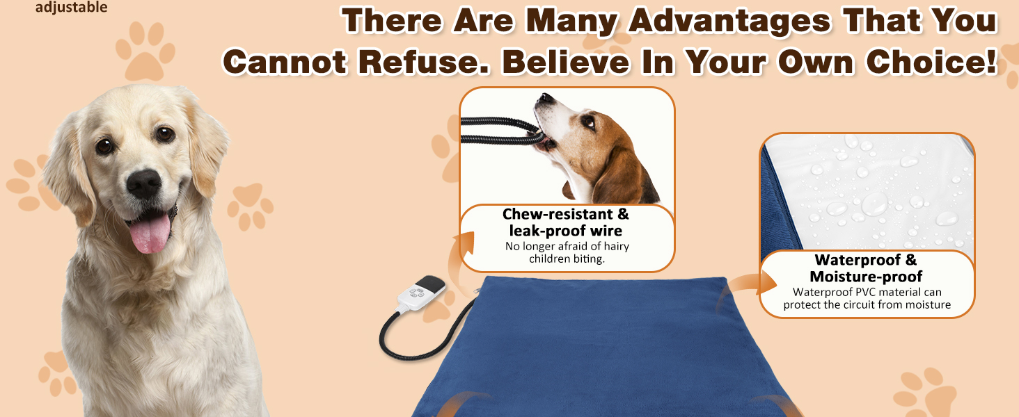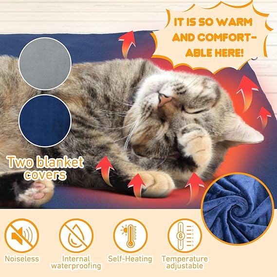 - Unique pet heating pad for cats design: power cord add anti-bite tubes to prevent pets chew the wires. Cat heating pad indoor is made of waterproof outer layer, scratch-resistant and waterproof. Self animal heating pad for cats come with two replaceable blanket covers to change
