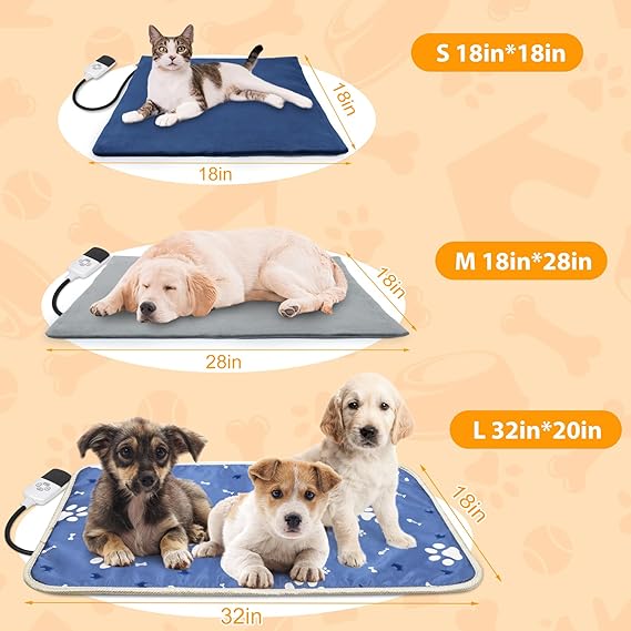 Heated Cat Bed Outdoor Indoor, Pet Heating Pad for Cats & Dogs, Warming Electric Cat Heating Pad with Chew Resistant Cord, Waterproof Adjustable Temperature & Time Kitten Warmer Mat 18"*18"