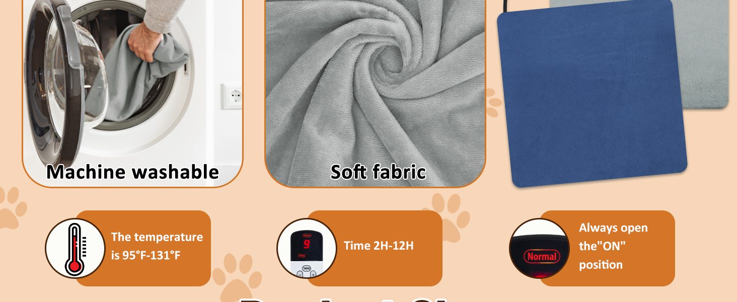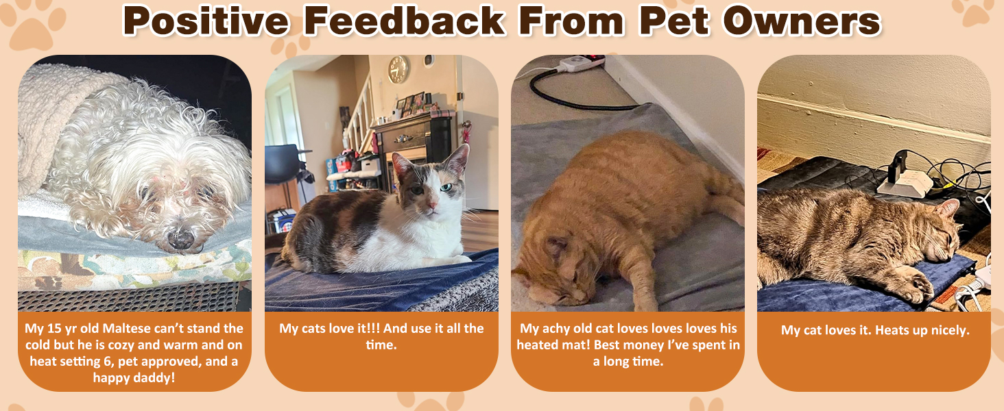 - Power outage protection: outdoor heated cat pad mat indoor with power outage protection temperature control can avoid overheating. But please keep cat heater flat during use (try not to fold cat warming pad mat more than 90 degrees when using outdoor heated cat bed indoor)