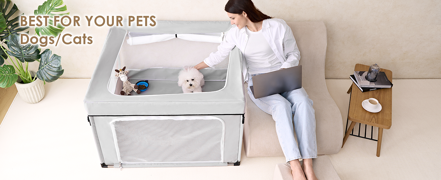 - SAFETY & COMFORT: Equipped with secure locking zippers, this puppy pen creates a protected and cozy space for puppies, kittens, and other small animals. It also serves as a great interactive zone for play and bonding between pets and their owners.