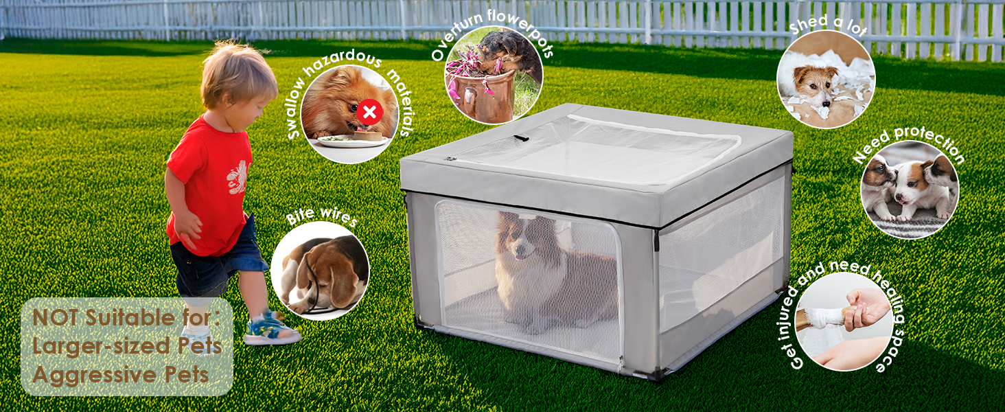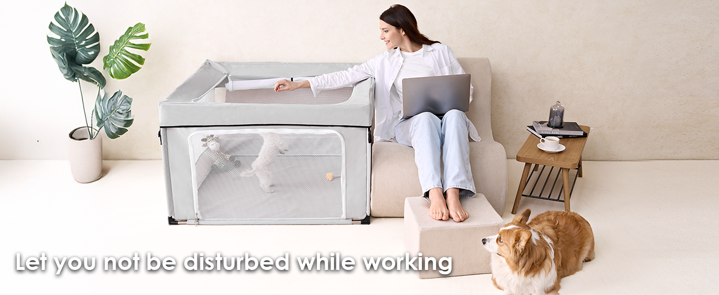 - EASY TO INSTALL & STORE: This dog play pen requires no tools for setup and can be quickly assembled. Note that it needs to be disassembled for storage instead of being folded as a whole. When not in use, it disassembles smoothly for compact storage. Its portability makes it simple to relocate and use in various locations.