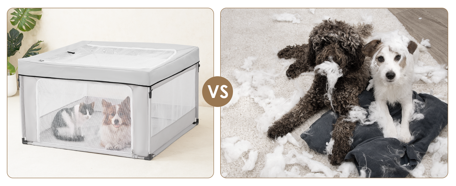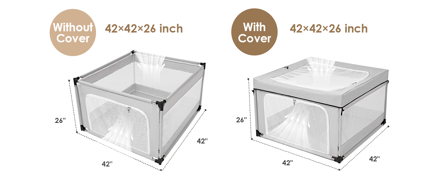 - HIGH-QUALITY MATERIALS: EHEYCIGA puppy playpen comes in two options: 42x42x26 inches with or without a top cover—please choose according to your needs to avoid selecting the wrong model. The cover can be conveniently detached. Crafted from 600D Oxford fabric with PVC coating, reinforced meshes, and sturdy SS tubes, this dog playpen offers structural strength, long-term durability, and excellent breathability.