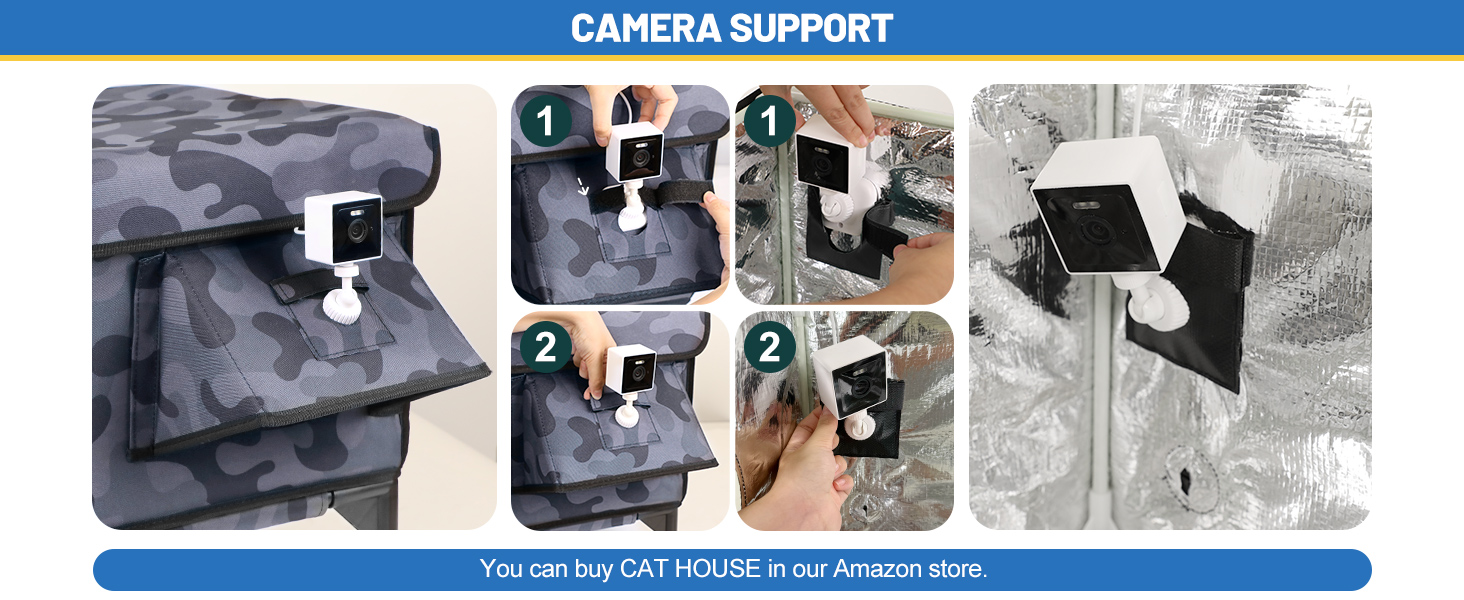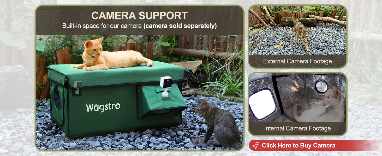 - ESCAPE DOOR AND MONITORING: The weatherproof outdoor cat house includes a built-in escape door to ensure your cat can exit safely at any time. It also supports our optional cameras (sold separately) both inside and outside, allowing you to monitor your kittens and the surrounding area with ease.