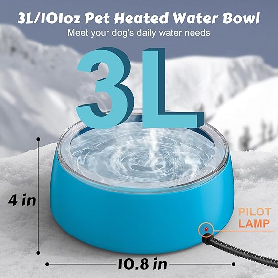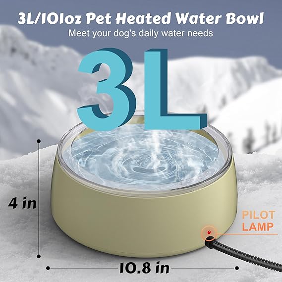 - 3L Large Capacity: The heated water bowl can hold 101 ounces of water, providing plenty for your furry friend. Make sure your pet has access to fresh water throughout the day