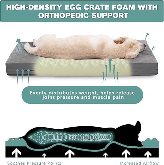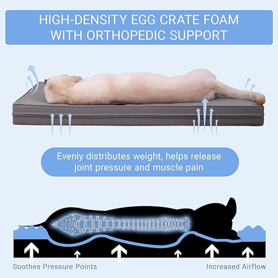 Vonabem Waterproof Dog Bed Large Medium Sized Dogs - Outdoor Orthopedic Crate Pad, Washable Pet Beds Removable Cover, Egg Crate Foam Support, Durable Anti-Slip Kennel Pads 35"x22", Gray