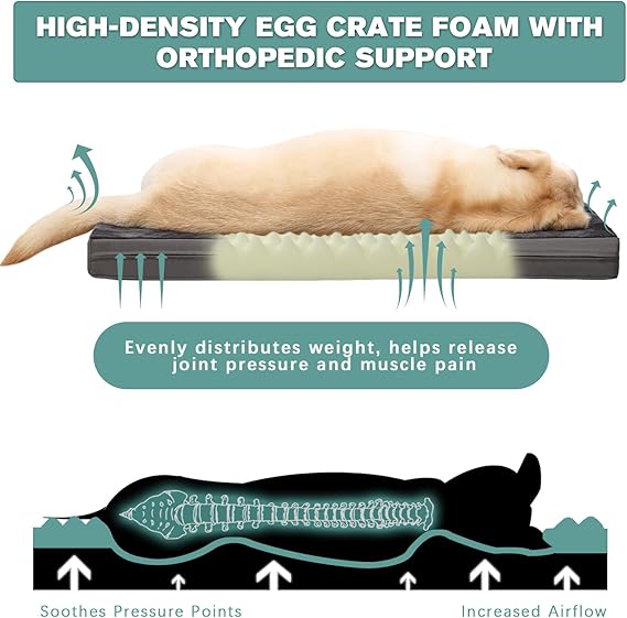 - Orthopedic support: Vonabem orthopedic dog bed is filled with high-density egg crate foam. It provides sufficient support for the spine, helps release joint pressure, alleviates muscle pain and promotes deep sleep, which is a great choice for elderly dogs or pets with discomfort