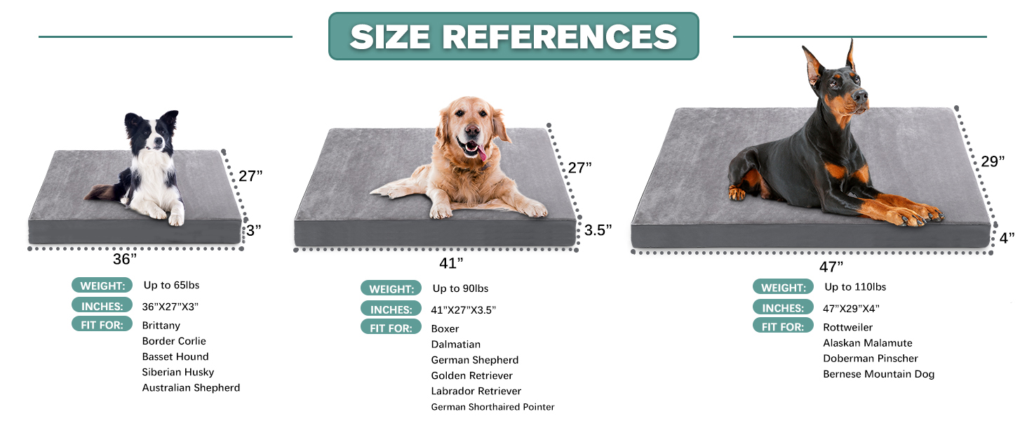 - Size & occasions: Currently available in 6 sizes. Extra large dog bed 53x36x4" for dogs up to 130 lbs, 54 inch dog crate bed is suitable for breeds including Alaskan Malamute, Rottweiler, Bernese Mountain Dog, Doberman Pinscher etc. Being lightweight and easy to carry, the dog cooling bed can be placed in kennels, in your car boot, indoor or outdoor or anywhere you want it to be