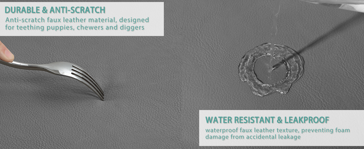 - Faux leather reversible design: The two-sided design indestructible dog bed features ultra soft cozy flannel with a reverse side of cooling durable anti-scratch anti-slip faux leather, which keeps your fur baby cool in the summer and warm in the winter. The flat dog mattress design provides dogs and cats plenty of room to sleep or stretch out
