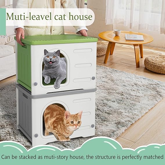 - Can be stacked: The top and bottom patterns are perfectly match. If there are 2 or more cats in your home, You can consider buying more cat houses and stacked them as a Multi-story to save you space