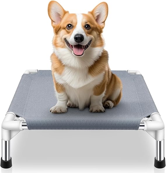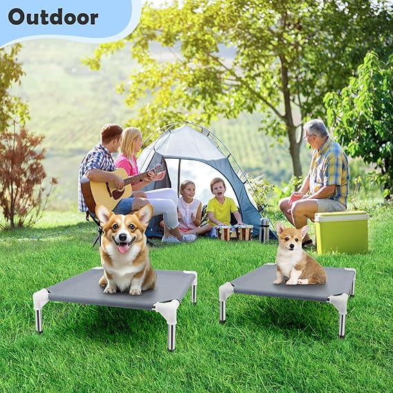 - [Travel Dog Bed] - Our outdoor dog bed is made of high-quality stainless steel that's resistant to peeling and fading. It's perfect for harsh outdoor environments. Indoors or outdoors, summer or winter, campsite, pool or backyard, you can take this outdoor dog cot to accompany your pooch. It keeps them off the ground, ensuring a cleaner and cooler play and rest experience.