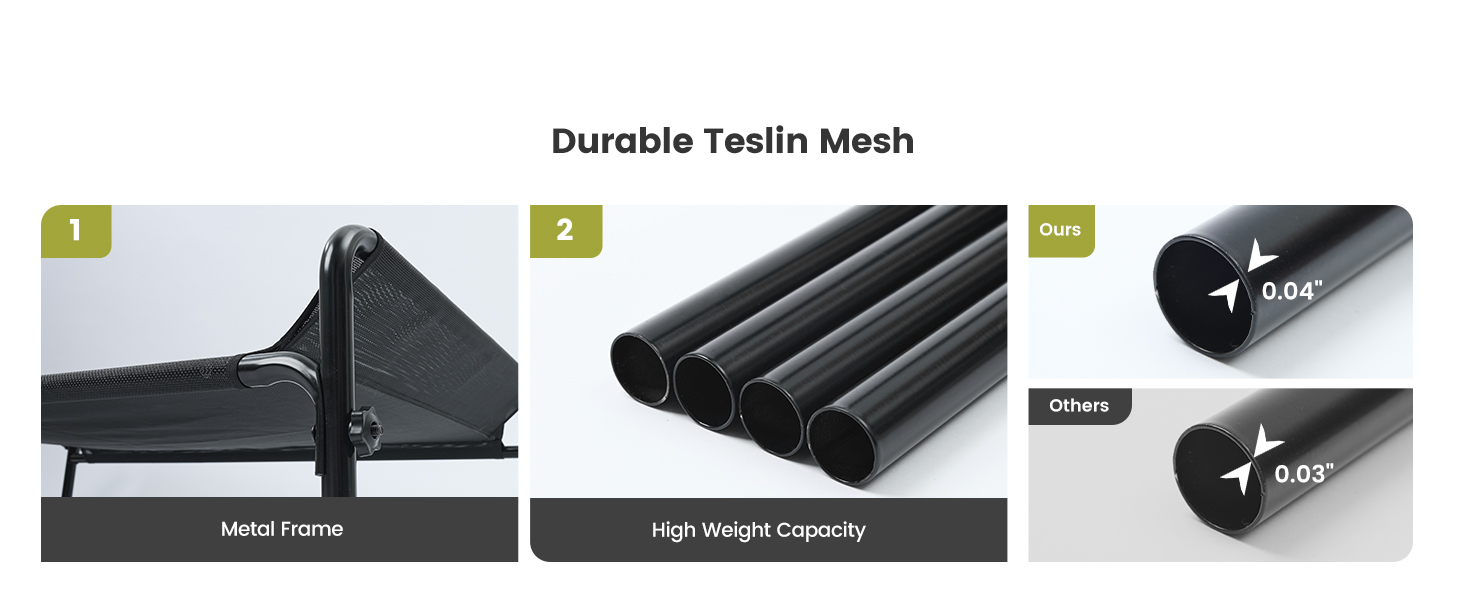 - Strong & Durability: Reinforced Teslin mesh resists scratching and chewing, offering excellent support and even pressure distribution to relieve joint and muscle pain. The lightweight metal frame in size S/M has been strength-tested to support dogs up to 110 pounds, while the L size supports up to 150 pounds.