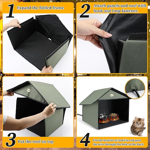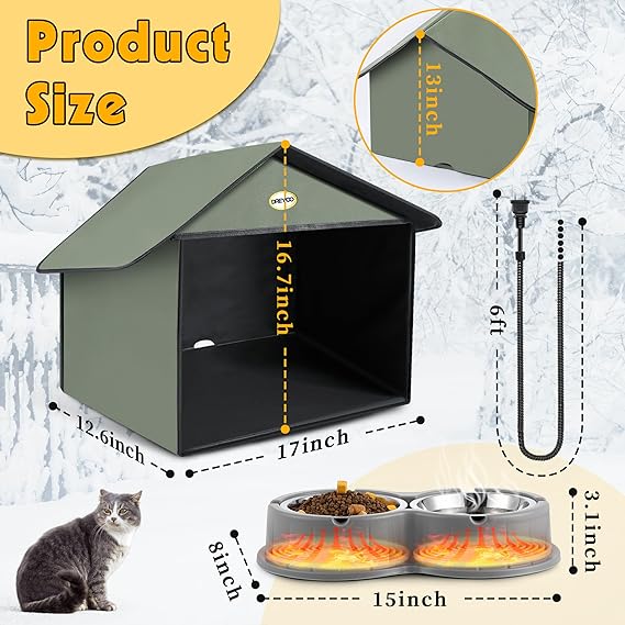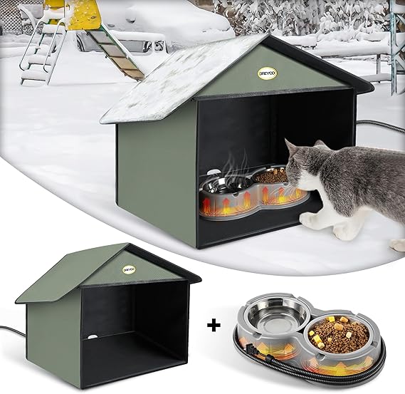 Dreyoo Outdoor Cat Feeding Station with Heated Cat Water Bowl, Weatherproof Kitty Dining Room Outdoor with Heated Pet Bowl for Food and Water, Feral Cat Feeding Station Cat Shelter(Grey)