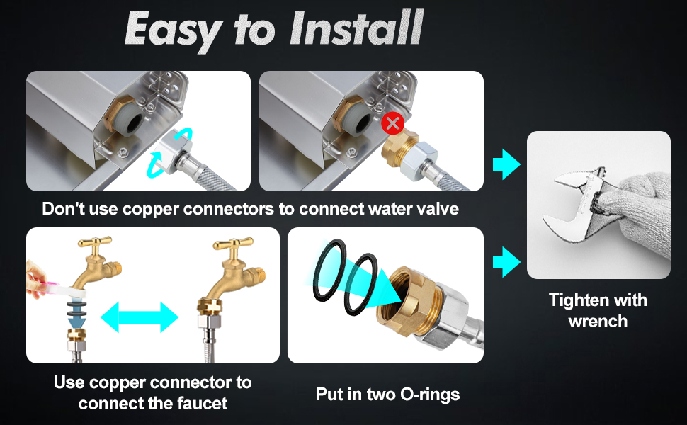 - [Easy to Install]: You just confirm if your faucet has a 3/4in GHT standard thread. The included accessories have everything needed for a hassle-free setup. With mounting screws, it can be wall-mounted or placed on the ground, making it perfect for yards or farms Kind tips: Users should verify thread compatibility before purchase for a smooth connection