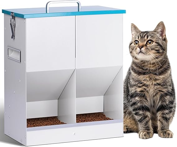 - TWO CAT FEEDER: The Upgrade Cat Feeder is designed to dispense food into two separate feeding ports, preventing competition between cats