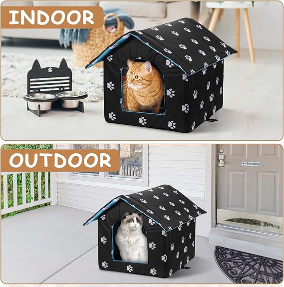 - FOLDABLE AND EASY TO STORE: the winter waterproof outdoor cat house can be folded, you can easily carry and store the cat bed, the outdoor feral cat shelter is easy to use.