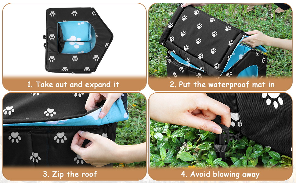 - OUTDOOR CAT HOUSE: The outdoor waterproof pet house is attached with top zipper, which makes the outdoor waterproof cat house removable and foldable, easy to store and clean, it's a great outdoor waterproof cat house.