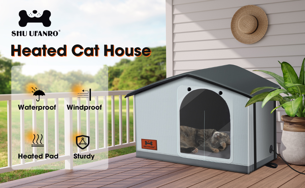 - 【Safe & Cozy Heated Pad】The outdoor cat house weatherproof includes a thermostatic heating pad that maintains a steady 122°F, with a soft machine-washable cover for easy care. Built with UL-tested heating wire and a fully waterproof, flame-retardant design, it ensures reliable warmth and safety. An extra-long 8.2ft power cord makes it perfect for outdoor patios and porches—keeping your furry friend warm and cozy all winter.