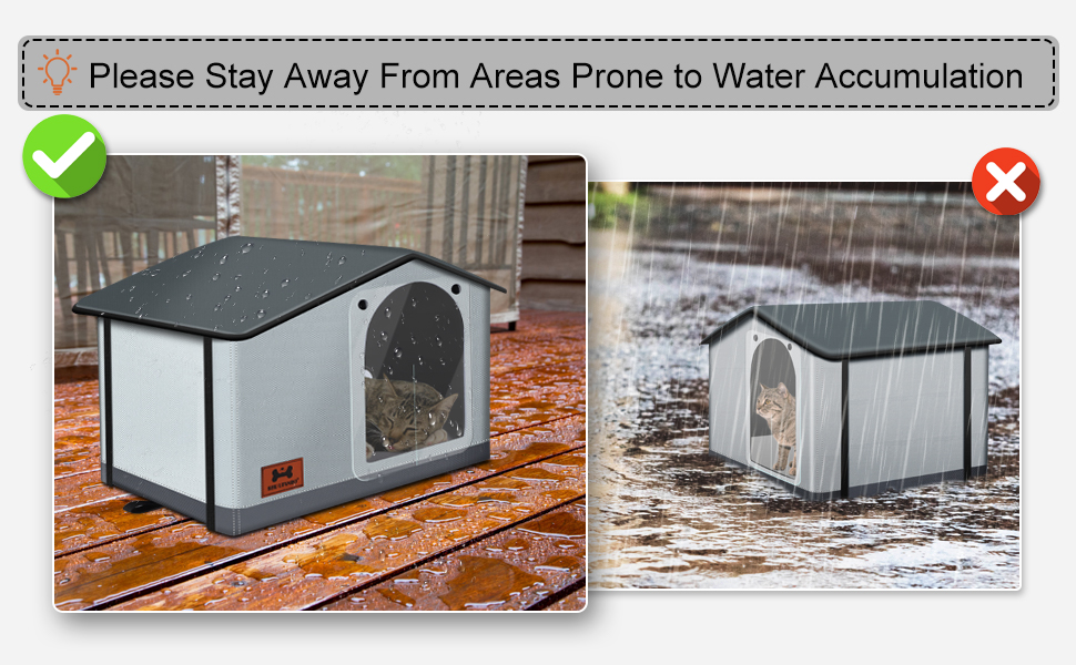 - 【Fully Waterproof & Weatherproof】This outdoor cat house is built with an upgraded waterproof roof and walls, plus a clear PVC door flap to block rain and wind. The waterproof bottom coating prevents ground moisture while adding insulation—keeping your cat dry, warm, and safe in all weather conditions.