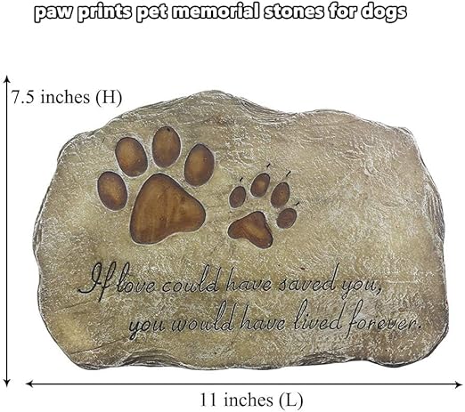 jinhuoba Paw Prints Dog Pet Memorial Stones, Pet Garden Stone Grave Marker for Dog or Cat, Hand-Painted Pet Memorial Gift Loss Gifts Sympathy Gifts for Dogs or Cats Indoor or Outdoor, 11" x 8"