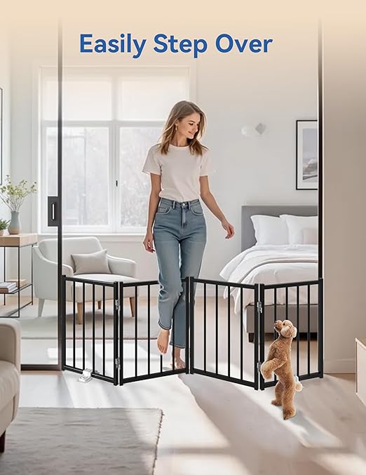 - Freestanding & Easy to Use: Simply place it where needed to create a secure pet zone instantly, blocks stairways, doorways, and hallways up to 48 inches wide. Without any tools or installation fuss. Ideal for keeping your small furry friend safe and your home organized