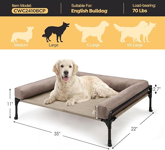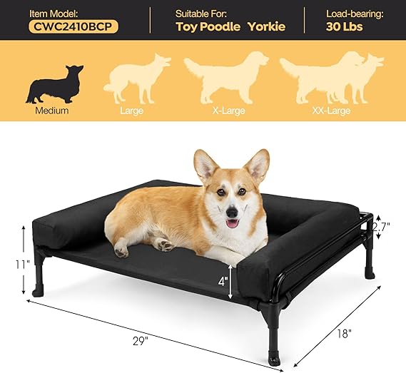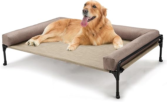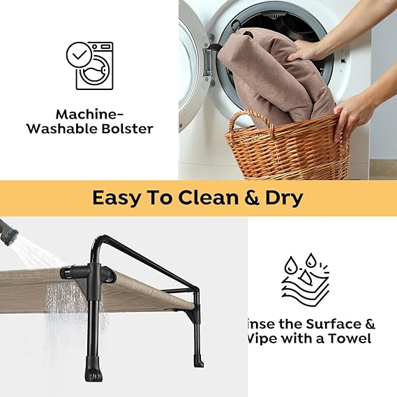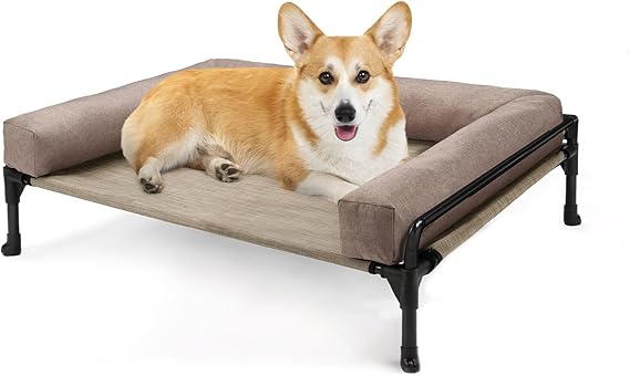 - Three-sided Bolster Design: The elevated dog cot with the three-sided bolster for added safety and support for your pet's comfort. The raised edges are perfect for pets who like to recline or snuggle, providing a sense of security; the removable pillow can meet your dog's different needs for a sleeping space.