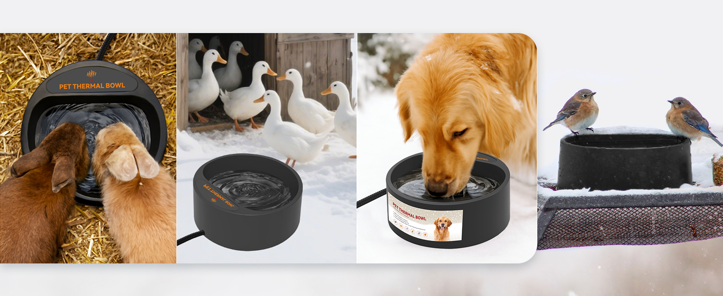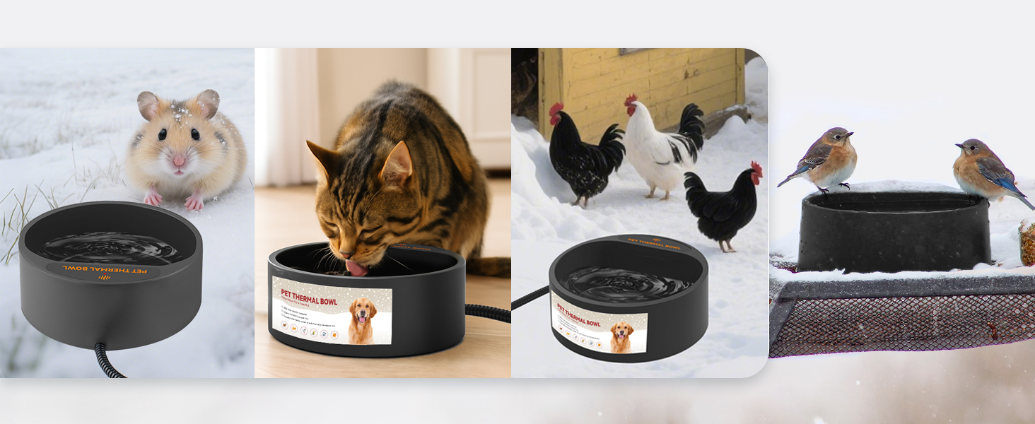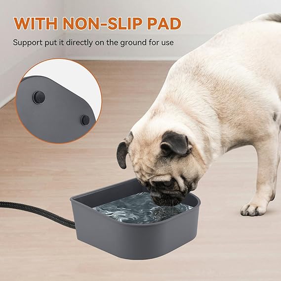 - NAMSAN heated water bowl keeps water from freezing, even if in the extreme cold day, it can provide drinkable water for pets outdoors. Hold 0.58 gallons (2.2 L) water, ensure the animals can drink water anytime and anywhere.