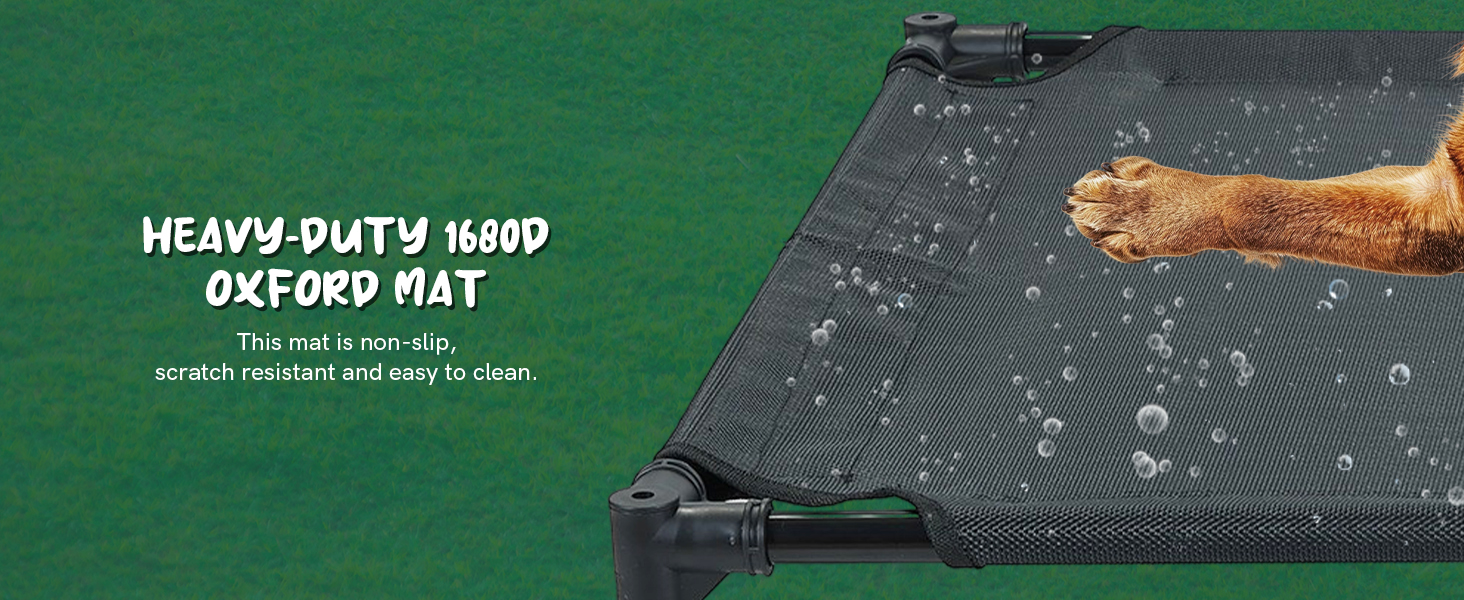 - Durable Structure & Easy to Clean: Crafted from 1680D Oxford fabric and supported by a strong steel frame, this pet bed is wear-resistant, moisture-proof, and scratch-resistant—perfect for daily use, backyard lounging, or camping. Designed for small to medium dogs, it supports pets weighing between 22-44 lbs. The waterproof Oxford surface resists dirt and stains and can be easily wiped clean for quick maintenance.