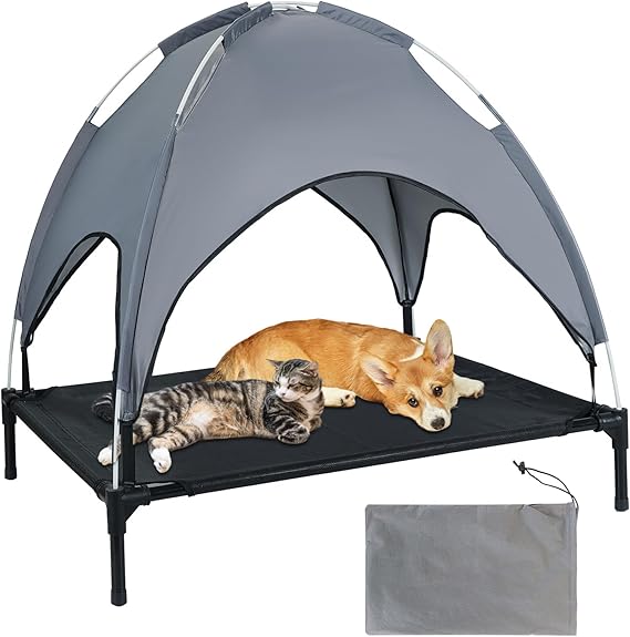 MYFULLY Elevated Dog Bed with Removable Sun Shade Canopy Portable Outdoor Pet Cot for Small and Medium Breeds, Waterproof Elevated Dog Bed for Camping, Backyard or Indoor Use