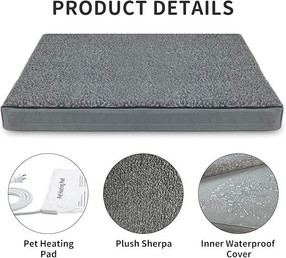 Heated Pet Beds for Indoor/Outdoor Cat & Dog Orthopedic Foam Warming Cat Beds Auto Temperature Control, Washable Cover with Waterproof Liner Thermo Kitty Electric Heating Bed