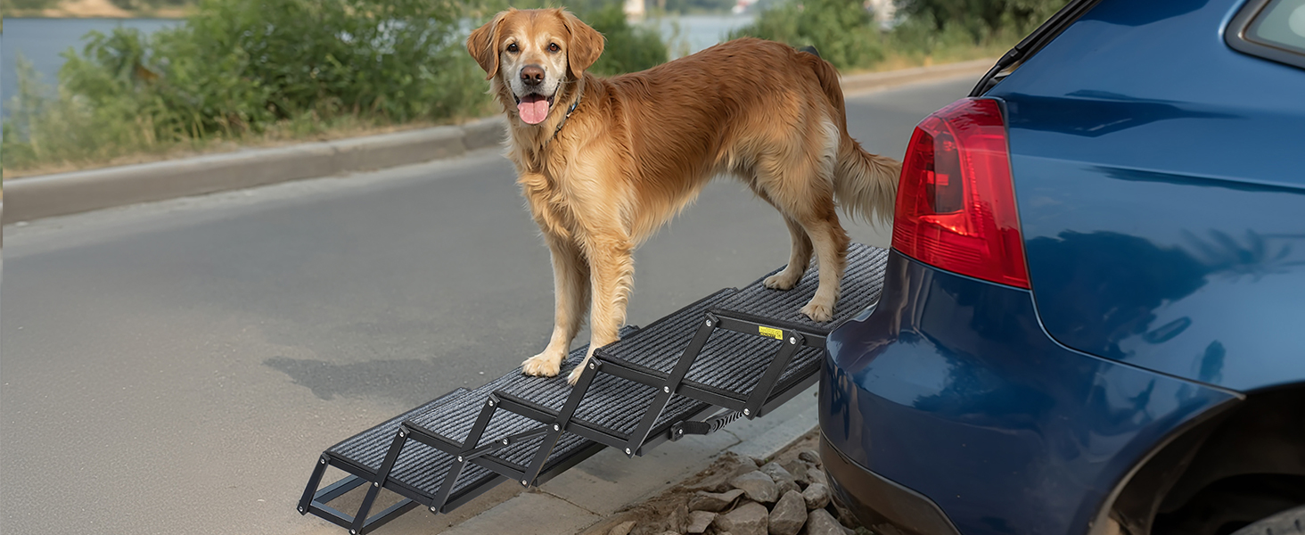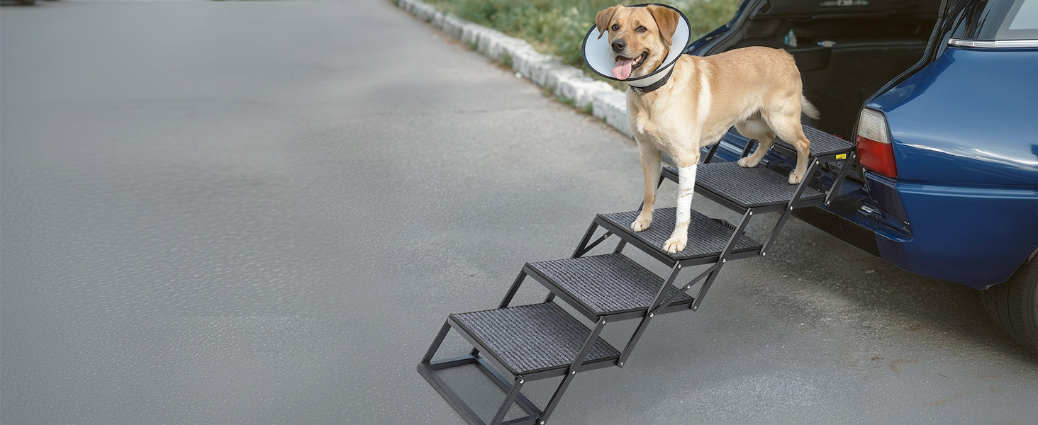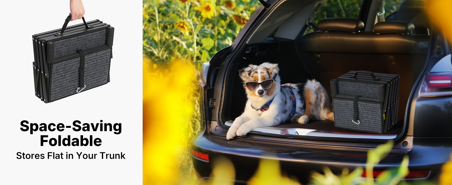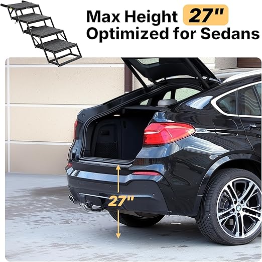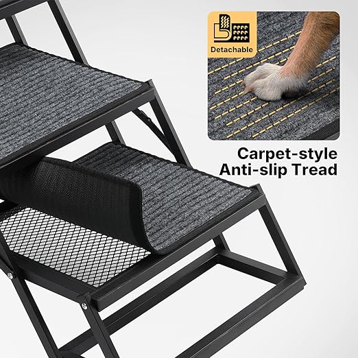 - Non Slip Design: Euipped with non slip rug surface of each step and non slip padding attached to the bottom, this car ramp for dogs prevents slipping while climbing, even on wet or slippery surfaces, providing dual safety protection