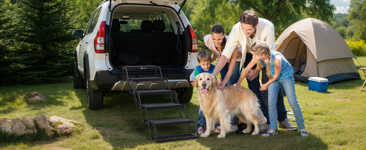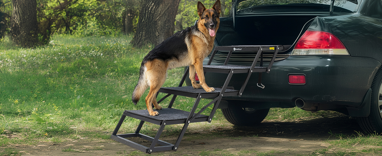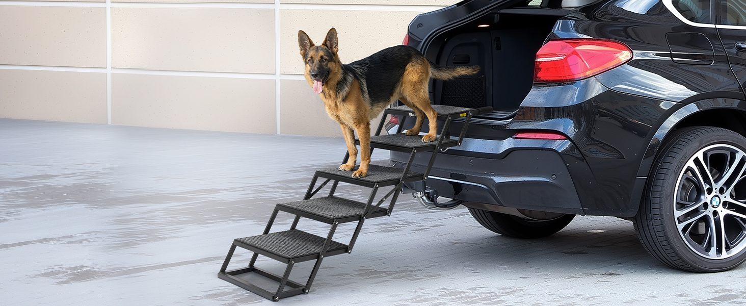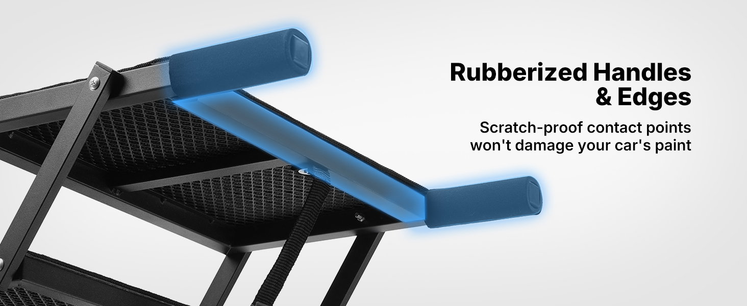 - Convenient Design: Our outdoor dog ramp is designed with rubberized handles and edges to prevent damaging your car's paint, and the stabilizing crossbar of this steps for dogs to get in car prevents wobbling during pet boarding