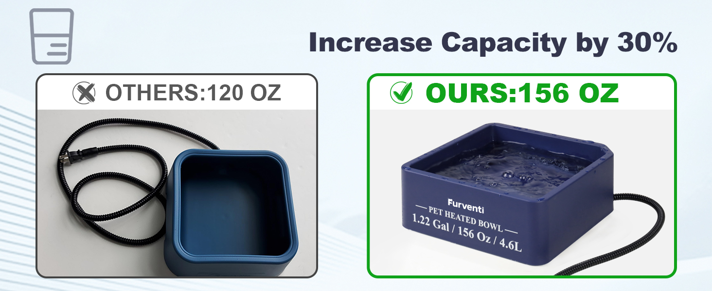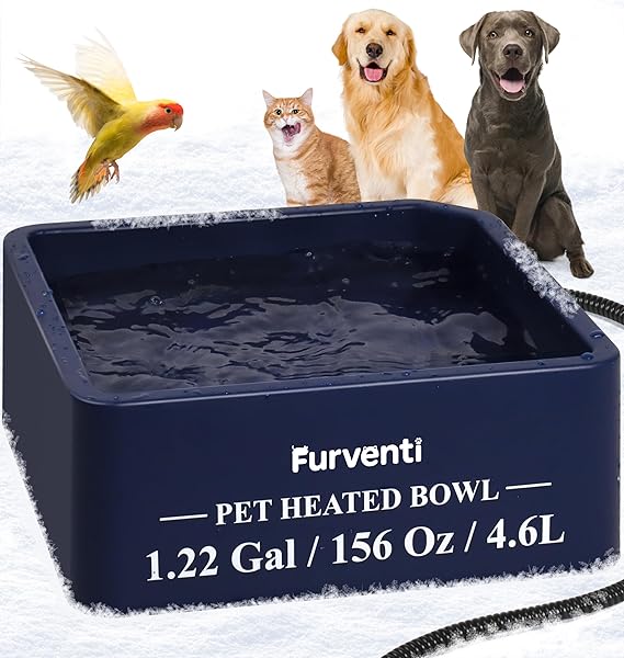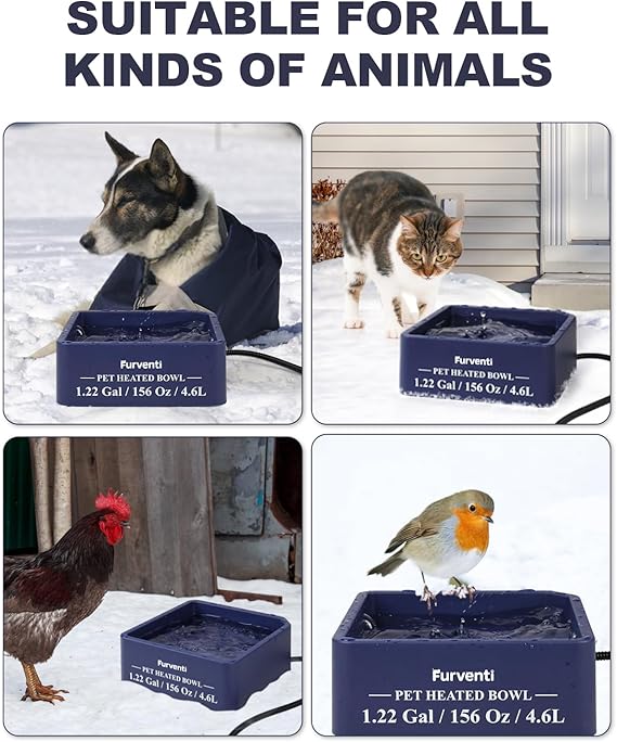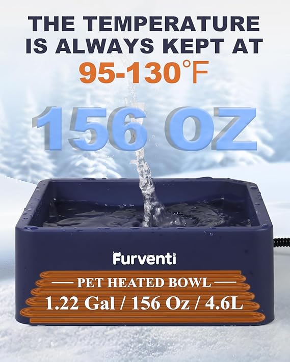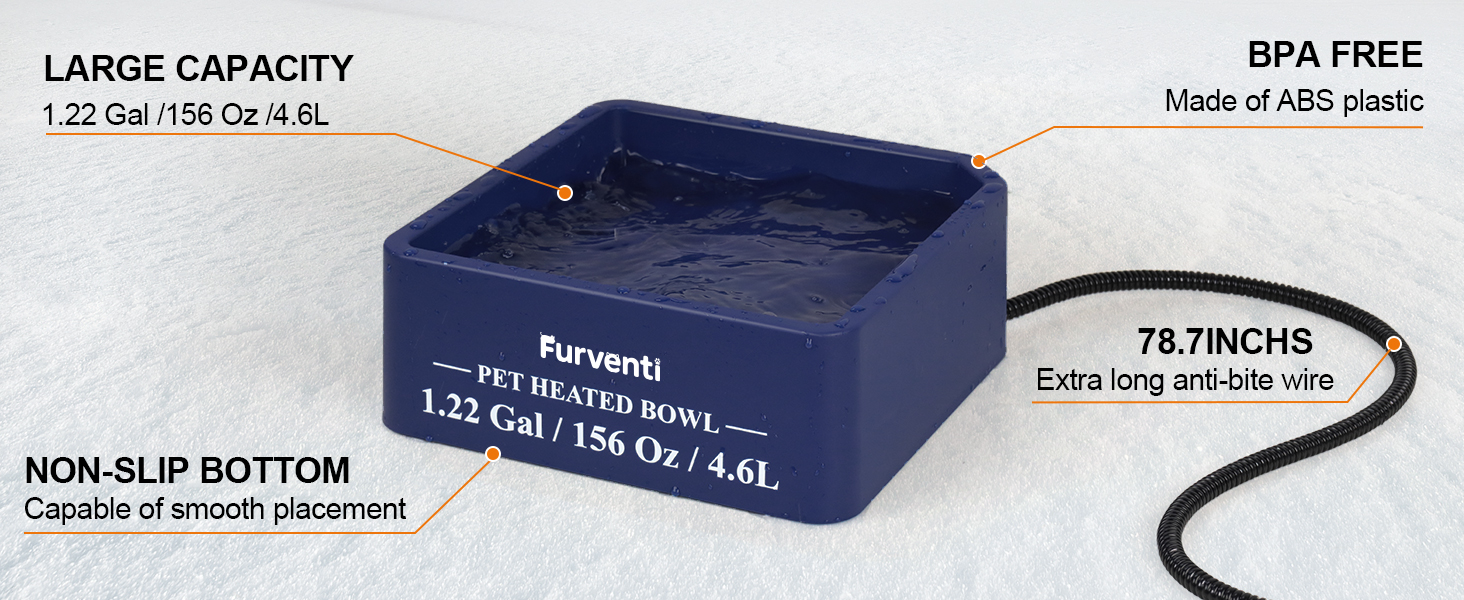 - 𝐄𝐱𝐭𝐫𝐚-𝐥𝐚𝐫𝐠𝐞 𝐜𝐚𝐩𝐚𝐜𝐢𝐭𝐲-1.22 gallon oversized heated pet bowl is an ideal choice for your convenience, avoiding the trouble of frequent replenishment of water and food.