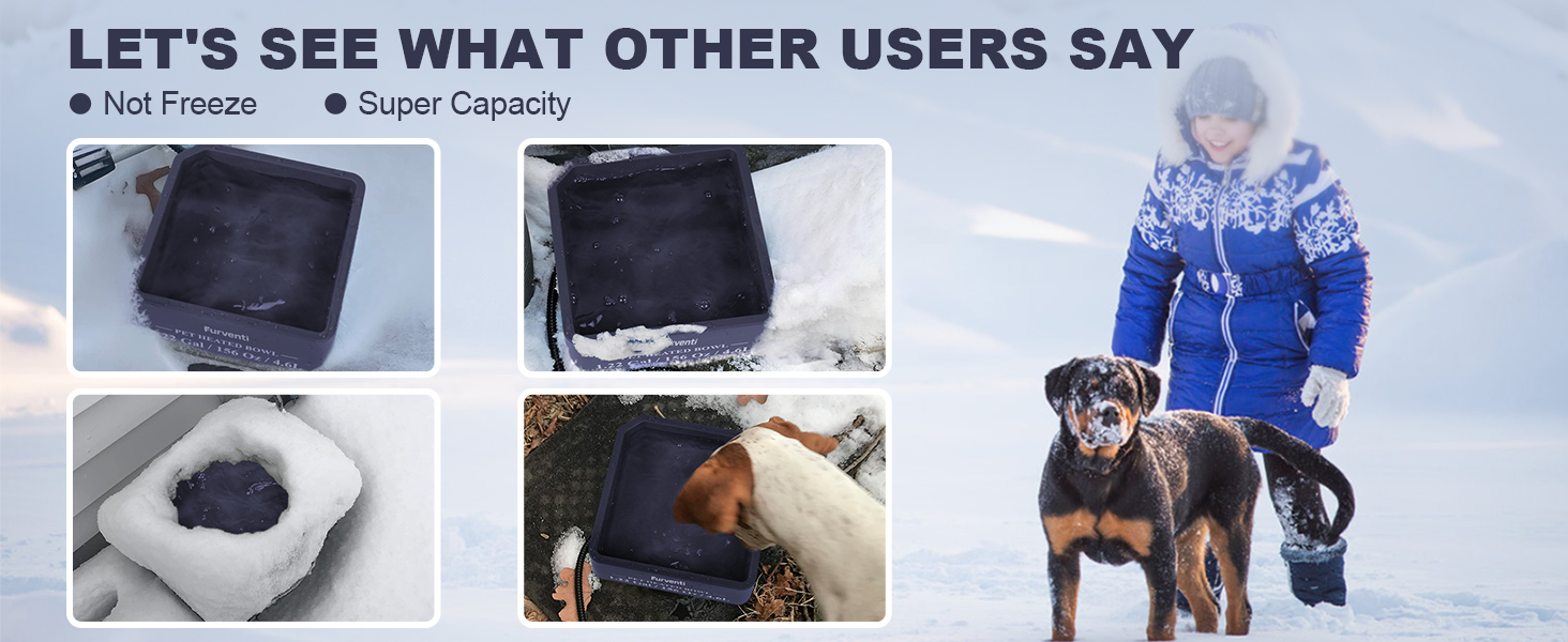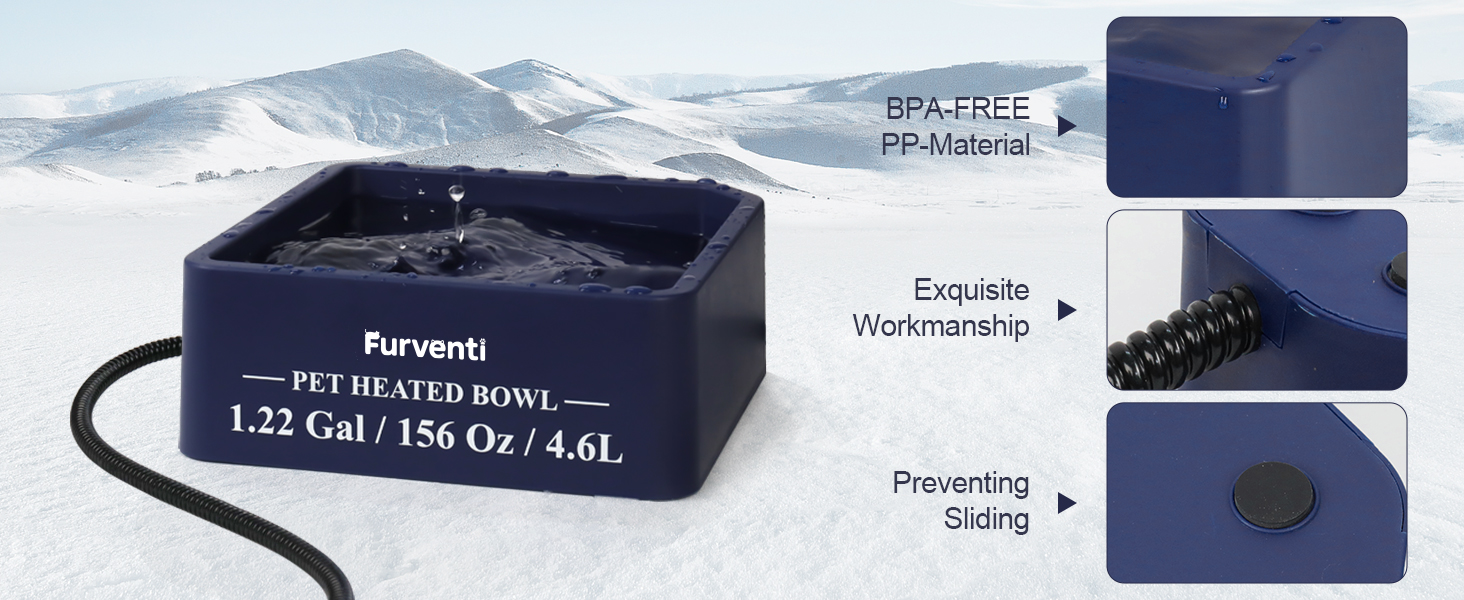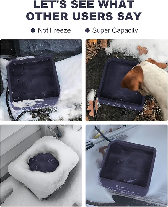 - 𝐃𝐞𝐬𝐢𝐠𝐧𝐞𝐝 𝐟𝐨𝐫 𝐄𝐱𝐭𝐫𝐞𝐦𝐞 𝐖𝐞𝐚𝐭𝐡𝐞𝐫- The heated pet bowl is completely waterproof and specially designed for outdoor harsh conditions. This heated dog bowl is made of premium BPA-free plastic. It is non-toxic and cold-resistant.So you don't have to worry about short circuit caused by wind, snow and rain.