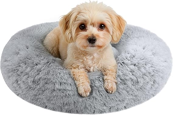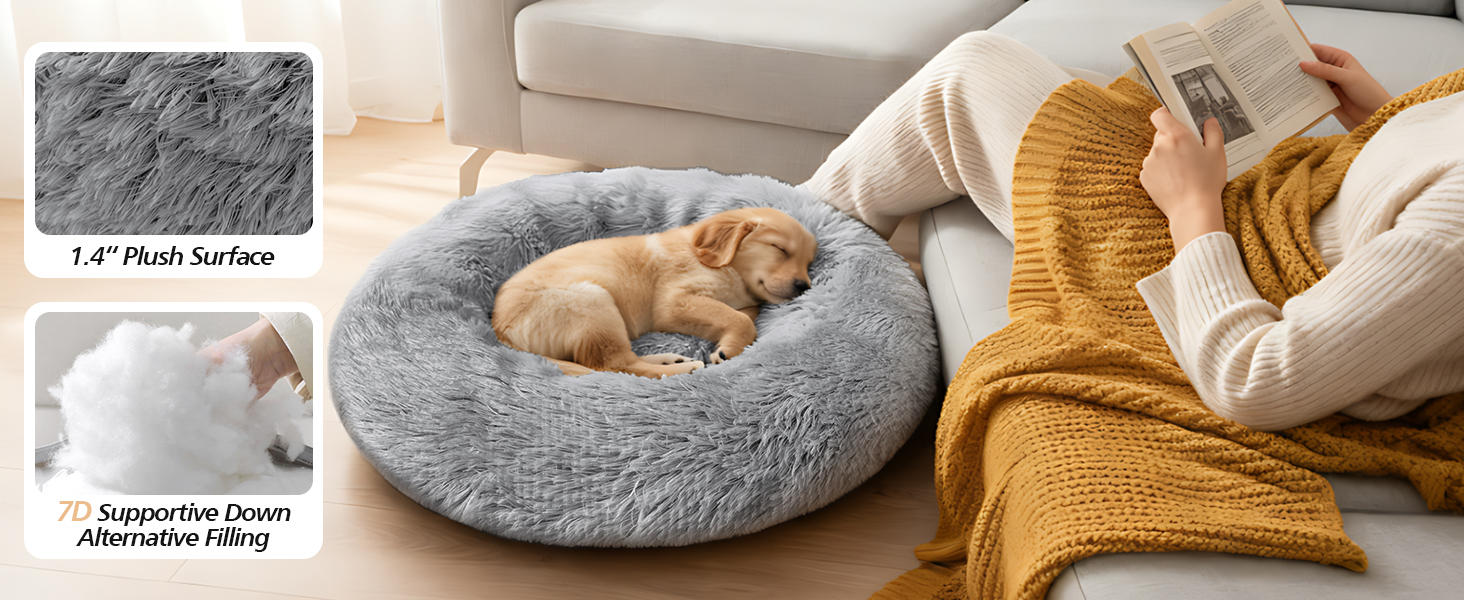 - Premium Material: The donut pet bed is featuring a plush faux fur exterior with polyester fiber fill interior, this cozy canine nest combines tactile comfort with structured cushioning