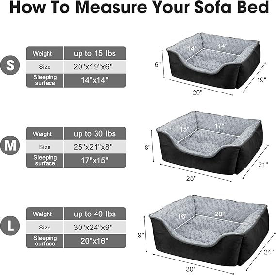 - Multiple Size Options: We offer a range of sizes to cater to dogs of different breeds and sizes. Whether you have a small, medium, or large dog, our dog bed has the perfect size for them. For large dogs or extra large dogs, the outer size is 42"x30"x10", and the inner size is 30"x20". Please review the measurements to ensure the correct fit for your pet.