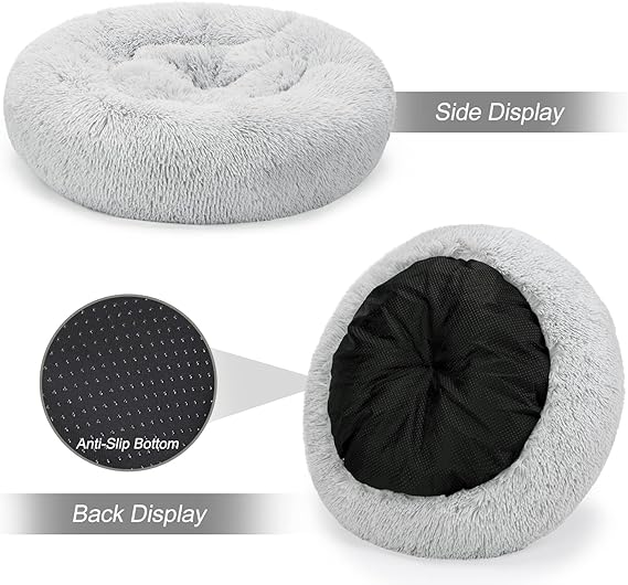 - Super Comfort & High quality: with faux shag fur, the round bed is ultra soft, warm and comfortable for your lovely friends. Urable nylon and luxurious faux fur come together help your pets restful sleep for improved behavior and better health.