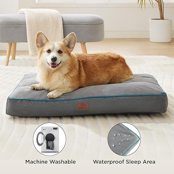 Bedsure Washable Dog Beds Large Sized Dog - 3 Inch Thicken Up to 80lbs Pet Mat Pillows with Removable Washable Cover, Grey